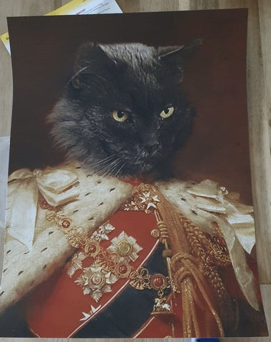 Todos los retratos de mascotas masculinas están hechos a medida y diseñados hasta el último detalle por nuestros diseñadores. A continuación, su retrato se imprimirá en un lienzo o en un póster, lo que prefiera.